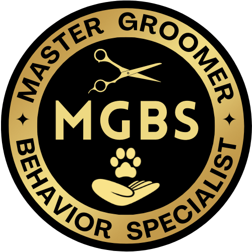 I am also a Master Groomer Behavior Specialist, certified through the Whole Pets Grooming Academy in New Hampshire. I am always working to learn more about how best to meet a dog where they’re at, and help them become more calm and confident about receiving grooming services.